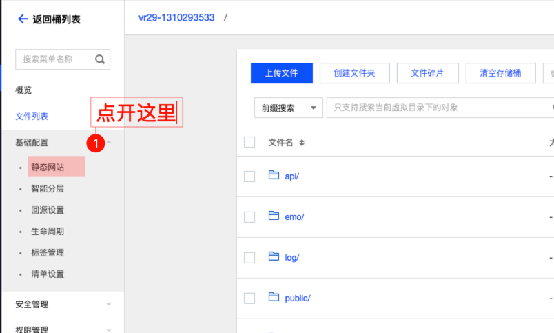 若是部署成功后无法访问, 您可以检查存储桶的静态网站权限是否打开
